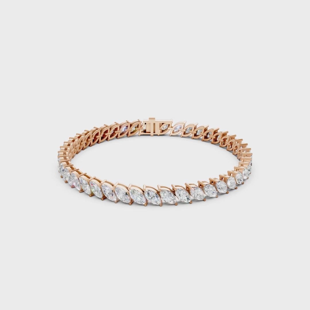 The Marquise Tennis Bracelet by Rosalía Jewels redefines timeless beauty with a sleek, contemporary edge. Featuring 40 exquisitely matched lab-grown marquise-cut diamonds, this bracelet flows in a seamless line of brilliance—totaling an impressive 10.09 carats. Crafted in 14k or 18k gold, available in yellow, white, or rose, it offers a refined profile designed to complement both day-to-day elegance and elevated evening style. Measuring 16.5 cm and secured with a polished clasp, this piece embodies effortless luxury and fluid sophistication.