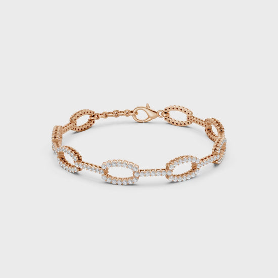 The Diamond Link Bracelet by Rosalía Jewels brings bold design and refined elegance into perfect harmony. Showcasing 182 meticulously set lab-grown round brilliant diamonds, this piece delivers a radiant total of 3.27 carats. Its sleek oval-link form is sculpted in solid 14k or 18k gold—available in yellow, white, or rose—and flows gracefully around the wrist at a length of 16.5 cm. Finished with a secure lobster clasp, this bracelet offers a contemporary edge with timeless brilliance—ideal for elevated everyday wear or standout styling.