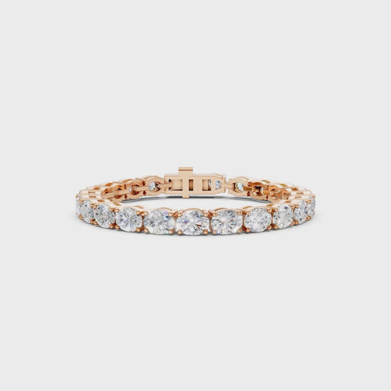 The Oval Diamond Tennis Bracelet by Rosalía Jewels is a refined take on a timeless icon. Featuring 40 beautifully aligned lab-grown oval-cut diamonds, this bracelet offers seamless radiance and graceful fluidity, totaling 6.4 carats of pure brilliance. Meticulously crafted in solid 14k or 18k gold—available in yellow, white, or rose—it embodies elevated simplicity and enduring style. Measuring 16.5 cm in length and approximately 3.45 mm in width, this piece is designed to transition effortlessly from everyday elegance to heirloom-worthy sophistication.