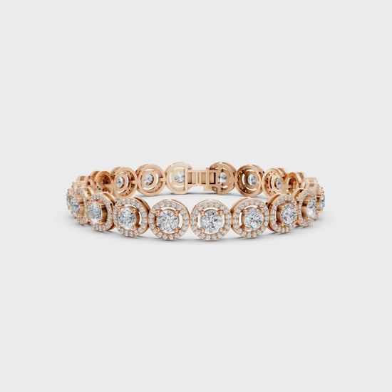 Introducing the Regal Halo Bracelet by Rosalía Jewels—a dazzling expression of grandeur and craftsmanship. This opulent piece showcases 20 round brilliant lab-grown diamonds, each framed in a radiant halo of pavé-set stones, amplifying brilliance from every angle. With an awe-inspiring total of 8.50 carats and over 400 diamonds meticulously placed, it’s a masterwork of detail and design. Set in your choice of 14k or 18k solid gold—available in yellow, white, or rose—and measuring 16.5 cm long with a bold width of up to 1.63 cm, this bracelet exudes timeless elegance and unmistakable power.